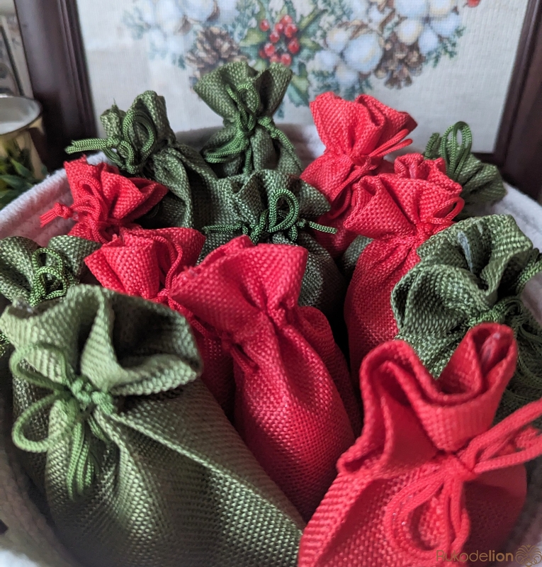 ?Наш календарь представляет собой деревянную елочку, а подарки в виде конфеток упакованы в мешочки. Он рассчитан на 8 дней для троих деток.