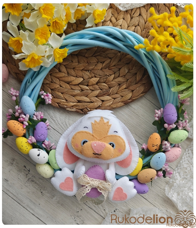 Сегодня вместе с вами мы создадим пасхальный венок с зайкой из фетра!