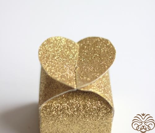 4. Вырезаем из блестящей бумаги шаблон нашей коробочки;