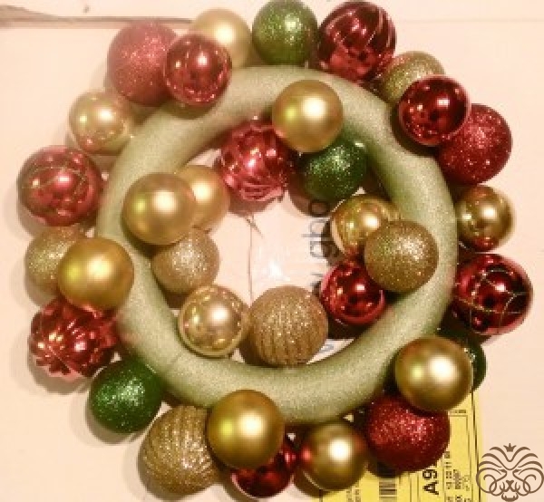 Гирлянда на дверь из елочных игрушек