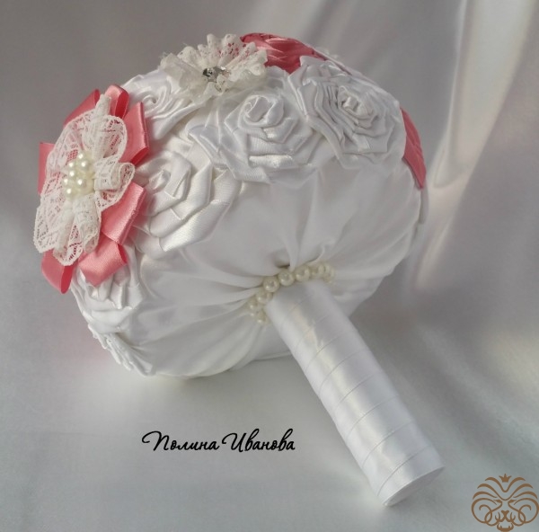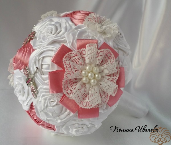 Брошь букет из атласных лент