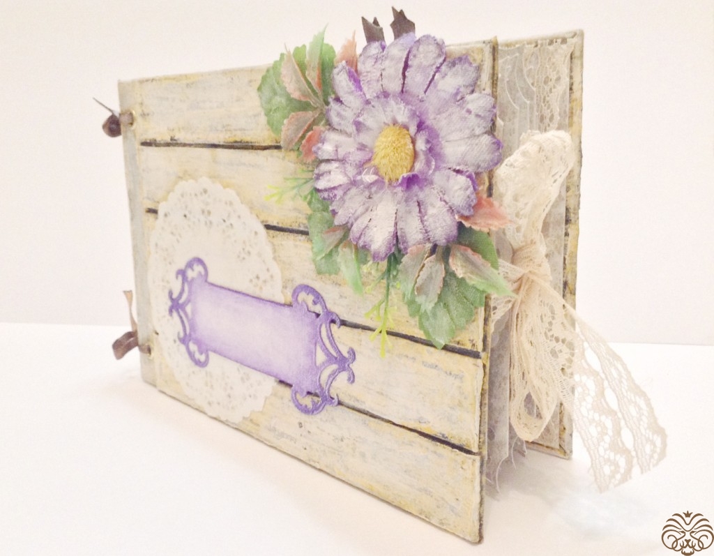 Мини альбом для фотографий. Первая моя проба стиля шебби шик. В альбоме 10 разворотов и все они декорированы разной дизайнерской бумагой, но в одном стиле. На обложке пустая рамка, чтобы владелец сам смог подписать альбом. Так же внутри есть секретные кармашки, развороты для дополнительных фото и теги для записей памятных дат.