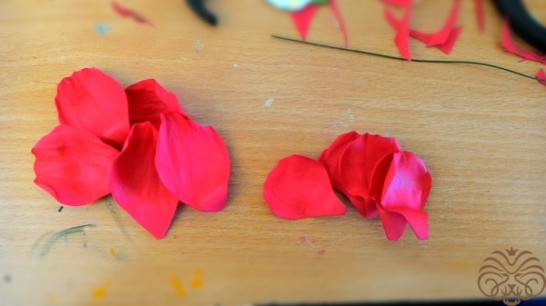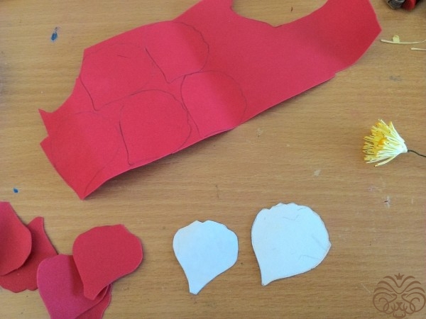 Вырезаем из красного дома лепестки 5 больших и 5 поменьше